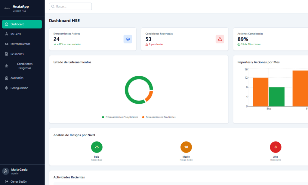 Nuestro equipo, con sólida experiencia en HSE (Health, Safety & Environment) y seguridad industrial, entiende los riesgos que enfrentan las industrias críticas y actúa con responsabilidad, anticipación y compromiso. Cada línea de código, cada sistema que desarrollamos, refleja esta conciencia: diseñamos software que facilita la gestión de riesgos, promueve el cumplimiento normativo y fortalece la toma de decisiones seguras.